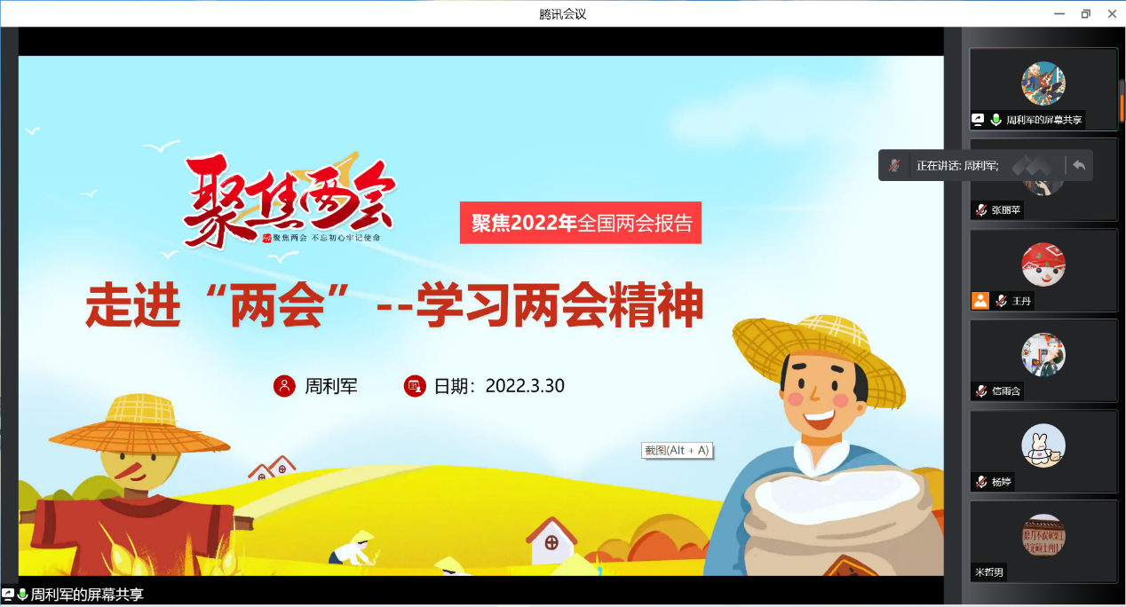 2019级临床药学硕士研究生周利军做了题为“走进两会——学习两会精神”的精彩报告。他首先分享了2022年全国两会精神,回顾了政府工作报告的重要内容及民生清单。关注民生、重视民生、保障民生、改善民生,同党的性质、宗旨和目标一脉相承。教育是民生之基,就业是民生之本,收入分配是民生之源,社会保障是民生之依。只有更好地了解民生问题才能更有效地找准努力方向。