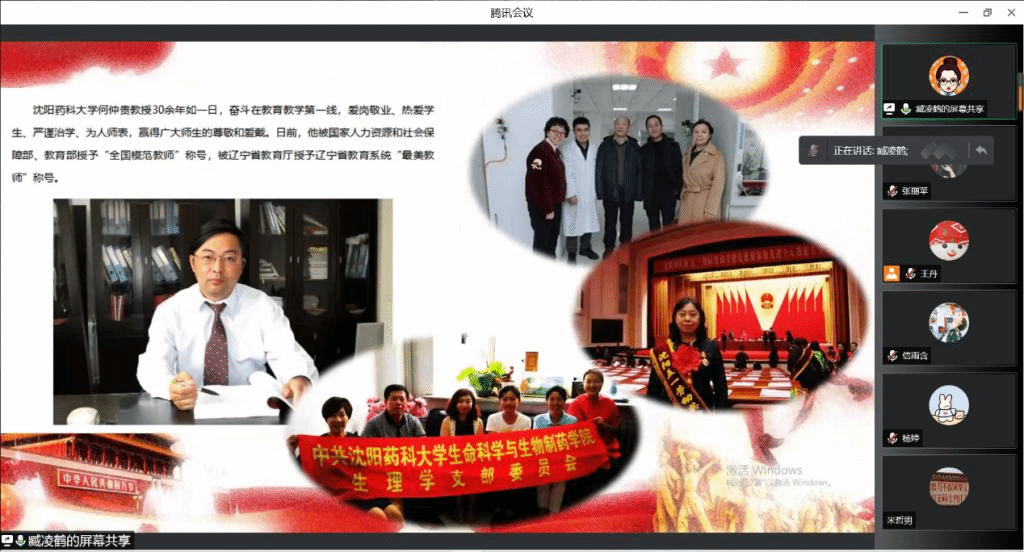为深入推进“两学一做”学习教育常态化制度化,充分发挥基层党支部的战斗堡垒作用,让党员学而信、学而用、学而行,更加自觉地听党话、感党恩、跟党走,365英国上市官方网站生理党支部联合2019级研究生党支部于3月30日通过腾讯会议形式开展了“勇担科研使命、传承沈药精神”线上主题党日活动。活动特邀校党委常委、党委宣传部部长王延风同志出席。主题党日活动由2019级研究生党支部书记王丹同志主持,来自两个支部的三位党员从科研创新、两会精神、“疫”不容辞等视角进行了心得分享。