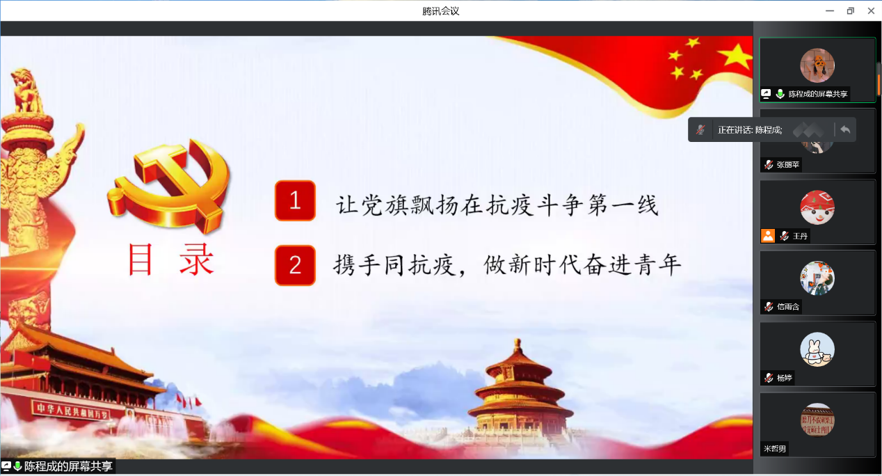 本次线上主题党日活动,既符合疫情防控的需要,又将理论学习与战“疫”攻坚实践相结合,实现了“两学一做”学习教育常态化制度化。教工党支部和研究生党支部联合举办活动也丰富了主题党日的形式,值得推广。