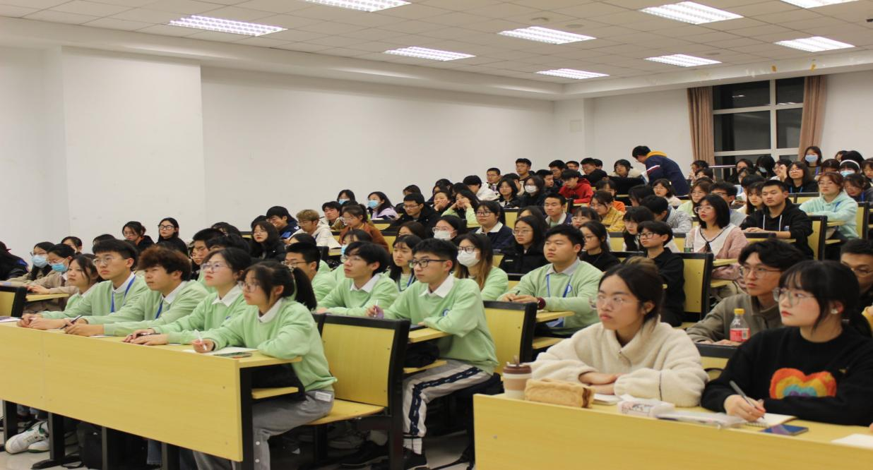 11月17日,学院党委副书记张海景为2021级临床药学专业学生讲授了“踔厉新征程,青春正当时”党课,和同学们共同学习领会党的二十大精神。张海景向同学们讲述了党的二十大报告提出的9个关键数字背后的重要含义,并着重强调了发展科技与教育的重要性与影响,强调实施科教兴国战略,强化现代化建设人才支持是事关现代化建设、高质量发展的关键问题,鼓励同学们成为知行合一、学以致用的高质量人才,为建设更加美好的社会主义中国,建设全民终身学习的学习型社会、学习型大国作出自己的贡献,并要积极加入创新创业的时代洪流中。张海景提出新时代青年要有担当、有作为、有闯劲,要发扬斗争精神,自觉把个人命运与国家命运、民族命运紧密结合,矢志社会主义现代化,实现中华民族伟大复兴,鼓励同学们要多读书,丰富自己,多一些书卷气。张海景书记还为大家提出了更加明确的学习与奋斗方向,让同学们进一步明白自身的责任与担当。
