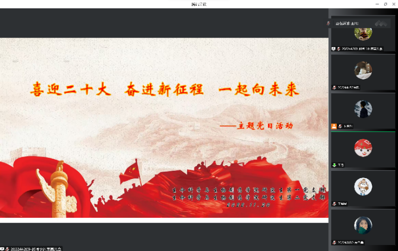 为增强基层党组织的凝聚力和战斗力,进一步坚定理想信念,传承信仰之光,赓续信念之火,2022年11月30日,由365英国上市官方网站研究生第一党支部发起,联合研究生第二党支部开展了“喜迎二十大,奋进新征程,一起向未来”主题党日活动。