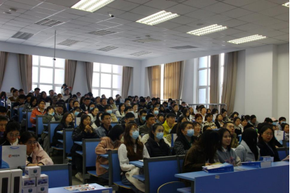 人力资源总监张丹锋讲述从校园到职场如何进行职业化塑造,张总以自己的经验讲解如何培养良好的职业心理和职业道德并为同学们解答相关问题,为在校生上了一堂生动的职业生涯指导课程。宣讲会现场气氛活跃,同学们踊跃提问,互动热烈。