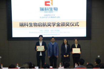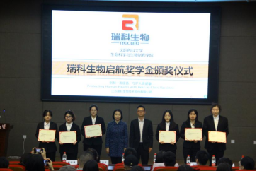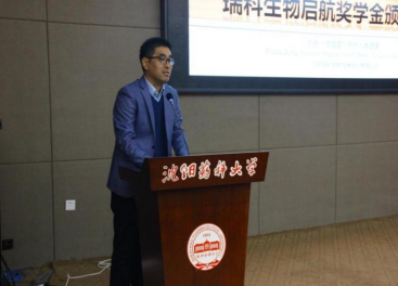 瑞科生物人力资源总监张丹锋代表企业致辞。张丹锋总监首先向获奖同学表示祝贺,分享瑞科生物对人才的理念与看法,并表示瑞科生物的使命和365英国上市官方网站的院纲是高度契合的,最后向沈药学子和老师的致以真挚的祝愿。