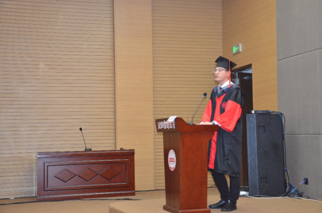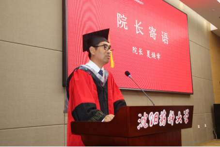 辽宁省优秀毕业生、临床药学专业博士研究生白朝辉同学代表全体研究生发言。白朝辉同学表示,今后不论身在何处,都将铭记沈药“团结勤奋,求实创新”的校训精神并与同学们共勉。