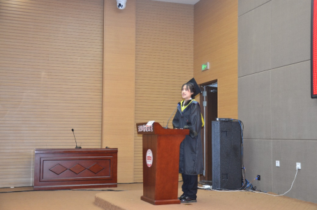 辽宁省优秀毕业生、86期生物制药专业粱珊同学代表全体本科毕业生进行发言。她表达了对学校、老师、同学、父母的深深地感激之情,回忆了沈药四年的点点滴滴,也表示自己追梦与圆梦的决心。最后梁珊同学为母校、老师们、同学们送上衷心的祝愿。