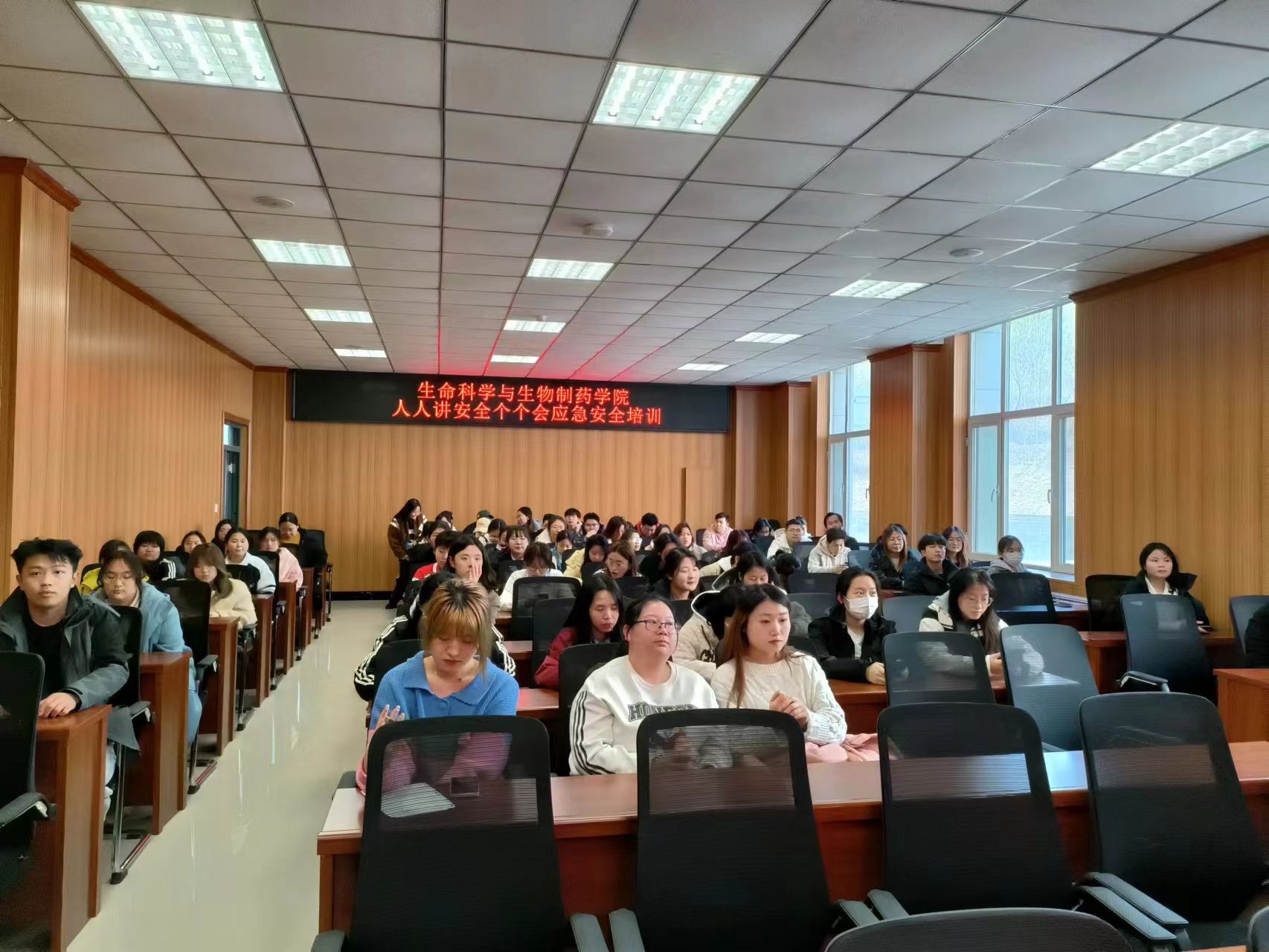 随后李闯老师又为学院部分学生代表做了“人人讲安全,个个会应急”主题消防培训。李老师结合近期典型校园火灾案例,提醒学生注意教室和宿舍用电安全,实验室操作安全。详细讲解了发生火灾后的自防、自救、逃生技巧,并按种类、功能、用途介绍了不同的灭火工具。重点介绍了灭火器、灭火毯等消防设施的使用方法,以及火场逃生和应急疏散的方法和原则。