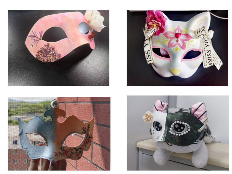 活动中,同学们选取自己喜欢的面具造型,拿起画笔,发挥创意和想象力。在纯白的面具上,勾勒出独特的线条,用画笔在面具上释放内心,用色彩描绘自我,抒发各自的心情,共同探索出对自我的认知与心灵的表达。