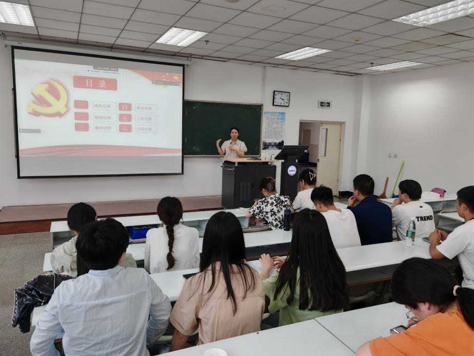 为深化党纪学习教育,进一步增强全体党员的纪律意识和规矩意识,推进全面从严治党向纵深发展,6月17日下午,365英国上市官方网站研究生第三党支部开展党纪学习教育专题党课,党支部书记王金悦以“恪守六大纪律,筑牢思想根基”为题,给全体党员讲授了一堂生动的党课。