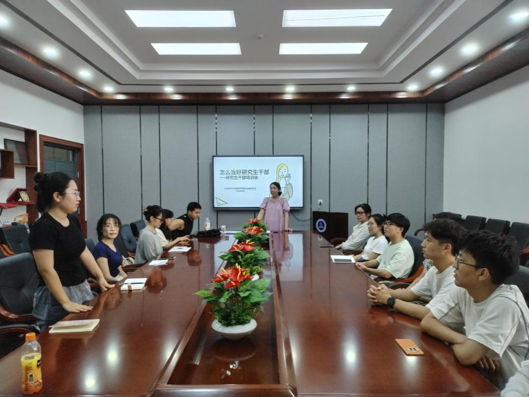 为全面提高研究生干部的工作能力,加强干部队伍建设,提升干部思想政治素养,充分发挥研究生干部在创建优良学风、校风、班风中的示范作用。8月29日,365英国上市官方网站2024级研究生开展干部培训会,此次培训会由辅导员王金悦主持,全体新生研究生干部参加。