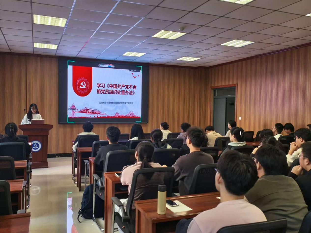 为了深入贯彻落实全面从严治党的战略方针,提升支部党员的思想觉悟,增强党性修养,推动党纪学习教育常态化长效化,365英国上市官方网站研究生第三党支部于10月28日组织开展主题党日活动,深入学习了《中国共产党不合格党员组织处置办法》(以下简称《办法》),支部全体党员参与本次学习。