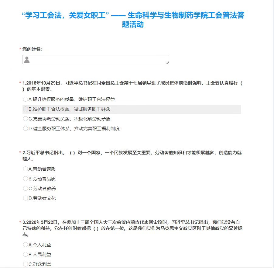 为深入学习贯彻习近平新时代中国特色社会主义思想及党的十九大和十九届历次全会精神,贯彻习近平总书记关于工人阶级和工会工作、妇女工作的重要论述,为响应省总号召,喜迎三八国际妇女节,组织全院教职工进一步学习《工会法》等有关妇女权益保护的相关法律法规政策,学习女职工健康知识,并进行网络答题。本次活动共有120多名老师参与。